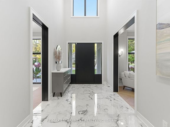 Private lotBlack-framed windowsManicured gardensGrand foyerSoaring ceilingsHerringbone white oak floorsSleek italian quartz tile