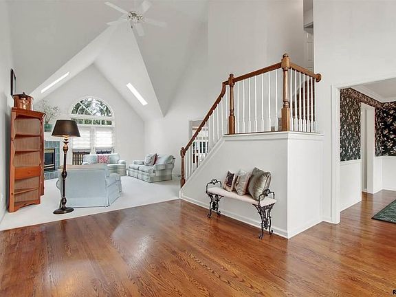 Custom built 1 ½ story Contemporary home in desirable Brittany neighborhood. Convenient First floor Master Suite with tray ceiling and walk-in closet. Entertain in the light filled spacious great room with cathedral ceiling. A beautiful inviting eat-in kitchen with hardwood floors, kitchen island, breakfast bar, granite countertops and pantry that opens to the ceramic tiled sunroom. First floor office with custom built wood shelving.