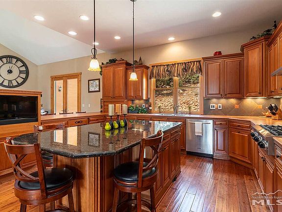 Enjoy elegant Northern Nevada living in this custom-built home in the Virginia City Highlands! Ideally situated on an expansive lot, this stunning residence has been crafted to make the most of an enviable outlook while ensuring privacy and comfort. The impressive layout of this one-of-a-kind home is highlighted by grand, high ceilings in every room as well as tall windows allowing for abundant daylight.