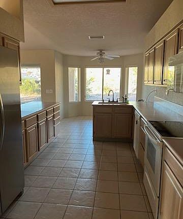 Beautiful home with large rooms and lots of windows and patio sliders to enjoy the desert landscaped front and backyard. Huge kitchen with lots of cabinet space with breakfast nook AND formal dining\ den area. Newly remodeled master bathroom with large garden tub and walk in shower. Large side parking for RV and all the toys. Covered patio across entire width of home overlooking large backyard. Storage shed . Washer, dryer and fridge come with property as convenience items. Tenant is responsible for electric, water/sewer/garbage. NO pets, just under 2000 ft. Large walk-in closet. Two bedrooms on one side, living area in the middle and master suite on the opposite side. Large living room has fireplace. Laundry room inside house. 10'x12' storage Red Barn and covered carport. Big lot with Long RV/boat storage on one side. Extra wide garage. 240v outlet for EV charger or ?. No pets allowed