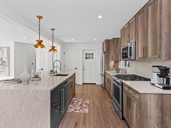 Don't miss this charming and recently updated home on a quiet street in Sherwood Forest. The beautiful kitchen, open to the living room and dining area, features custom cabinets, brand new stainless steel appliances, quartz countertops. Newly finished hardwood floors on the main level and in the bedrooms. The light filled primary bedroom has a huge adjoining fully outfitted walk in closet which could double as an office/nursery. A second bedroom with separate closet is a few steps up. Newer carpeting, washer and dryer, and lots of storage and possibilities on the lower level. With a fully fenced backyard, paver patio, and detached garage, this is a lovely place to call home.