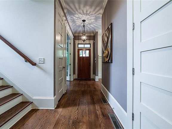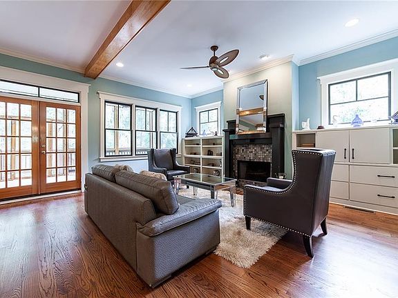 Gracious Southern home on large lot backing up to a creek on a quiet dead end in Midway Woods. Main level offers library; custom kitchen w/ unique granite, farmstyle sink, stainless appl, island open to fireside great room and butlers pantry to formal dining; sunny breakfast room & screened porch. 2nd level includes grand master suite w/ private screened porch; 2 add'l rooms, full bath & laundry room. 3rd story is an open room w/ a full bath (add'l bedrm/yoga studio/media room?). 2 car drive-under garage, unfinished bsmnt storage. Hardwoods, impressive moldings/trim.
