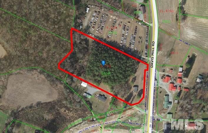 Just off US Hwy 70 East on Davis Mill Road east of I-95. Had a doublewide mobile home at one time that has been removed. Well and septic on site. Septic almost 40 years old. County water available. Currently zoned residential but would make great commercial site. DOT purchased small portion of this lot when overpass was built leaving 4.77 acres. Lot according to deed was 5.5 acres. Driveway in place. Stop and walk around. Good road frontage and access. Great location to build or start a business.