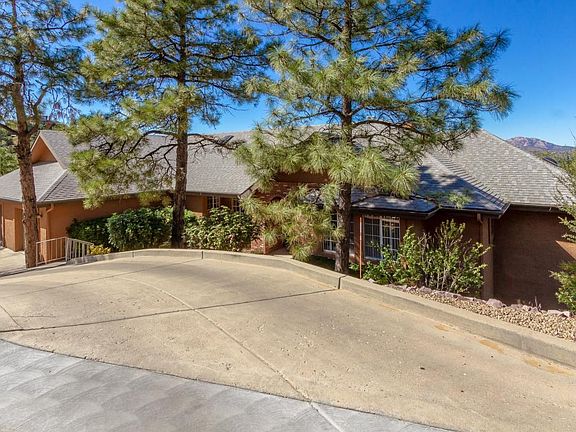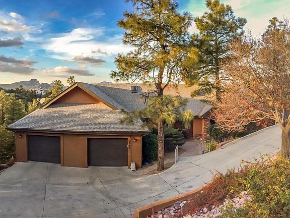 Main level living, workshop, huge view of Granite Mountain & Thumb Butte home for sale in the tall pines near historic downtown Prescott, AZ. Timeless brick entryway, potential in-law suite, man cave, family room or home business with separate entrance, no HOA, five minutes to downtown & Courthouse Square (but in the County). Main level has master suite with tumbled stone walk-in shower & custom cabinets, great room with huge deck for sunsets & entertaining, formal dining area, modern kitchen, oversized 2-car garage. Lower level has 2 bedrooms, office, media room & shop or potential in-law suite plus huge storage area below that space. Near Yavapai Regional Medical Center, National Forest, schools. Easy driveway. Fresh paint. Move-in ready.
