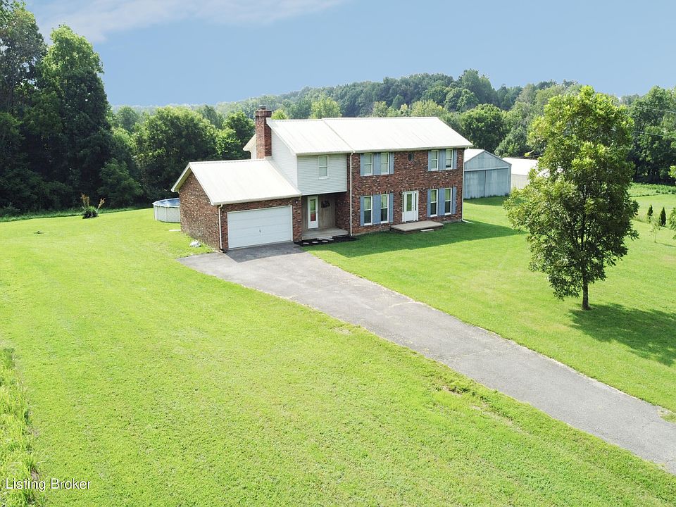 Welcome to your dream home in the heart of Kentucky! This charming property boasts 4 spacious bedrooms and 3 full baths, perfect for family living. The inviting family room features a cozy fireplace, while the dining room showcases unique hardwood flooring that adds character to the space. The generous kitchen includes a charming bump-out for your breakfast table, and the great room drenched in natural light is ideal for relaxation. The expansive primary bedroom offers double closets and ample room for both furniture and a cozy seating area. With an unfinished basement featuring tall ceilings and a two-car garage, this home provides plenty of storage and potential. Step outside to enjoy an above-ground pool with deck. Perfect for family fun and entertaining. The 30x56 out building is perfect for hobbies and storage. Nestled on 1.98 mostly cleared acres, accented by beautiful pecan trees and just 25 minutes from Elizabethtown and 30 minutes from Bardstown, this property offers the best of country living with easy access to lakes and parks. Additional acreage may be negotiable. Don't miss this fantastic opportunity to make this spacious country home you own!