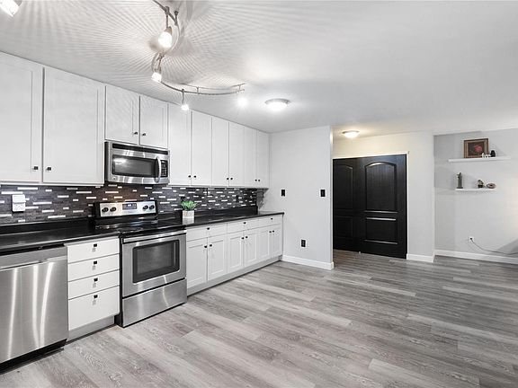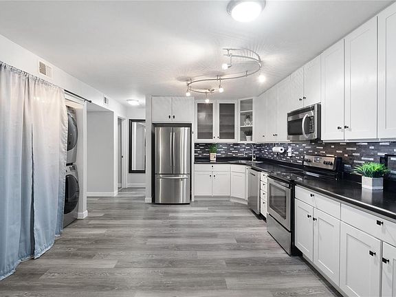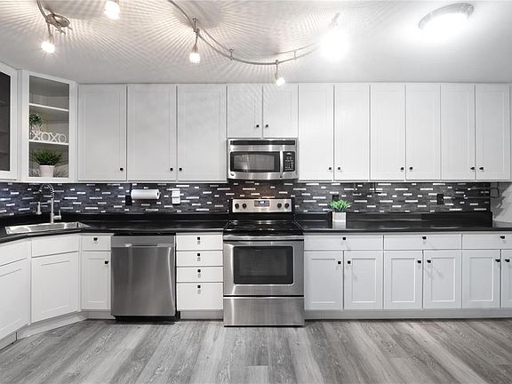 This beautifully renovated condo offers an open concept kitchen and living room with light neutral paint throughout. The eat-in kitchen features newer white shaker cabinetry, a tile backsplash, large one basin sink, and stainless-steel appliances. There's plenty of space for a large island, a table, or both!