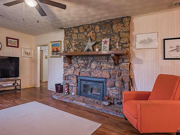 Come view this three bedrooms, two baths mid-century modern home within Rusk's city limits, but still has that country feel.The home features a 10 x 12 walk-in closet in the master bedroom, original hardwood floors, a large stone wood-burning fireplace in the living room for those chilly nights. The 18 x 22 garage has been converted to add additional living area. The garage conversion has a new Mr. Cool mini heat pump and french doors, and new electrical. The home has a new Atmox system, moisture barrier anti-pest insulation, and blown-in insulation to improve energy efficiency. There is an additional 11 x 17 room that could be an office, craft room, or bonus room. Enjoy drinking your morning coffee under the 16 x 66 covered patio. The home also has a new 12 kilowatts solar system that the sellers have decided to retain or can convey for an additional $15,000 (that's half the retail price).The unused kilowatts are currently being sold back to the electric company, making this an excellent investment. The 8.26 acres offer an apple tree,walnut trees, a pecan tree, and several other mature trees on the property and muscadine grapes. Approximately 4 of those acres are wooded.The property backs up to Jim Hogg Park. Additional 30 ft box truck storage. The 22 x 30 three-car carport gives you plenty of covered parking. Don't miss out on seeing this home!
