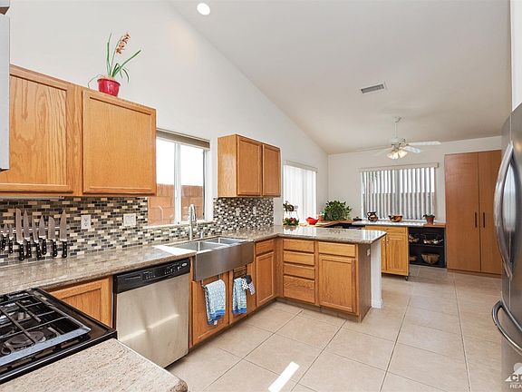 Unique property in the Salton City. This 4 bedroom, two bath home has vaulted ceilings with an open floor plan. Enjoy 2100 sq ft of living space including a formal living room, dining area and a great room with a fireplace.Enjoy the spacious kitchen with granite counters, stainless steel appliances, a 5 burner stove, microwave, oak cabinets with wine storage. The large master bedroom has two vanity sinks, a tub and separate shower. The 2nd bath is a shower over tub. Washer and Dryer are in the garage, however original hook ups are in a room that currently houses a 2nd refrigerator. This home is serviced by CVWD with in & connected sewer. You can't beat having a three car garage as well as a 20 ft wide gate for a large RV with a 50 amp hook up and a dump. There is also screened in porch and a raised deck to enjoy those incredible sunsets.The 4 year old air conditioning unit is 5 ton to keep you cool in the summer. The bonus is that the lot next door is included with the sale of the home
