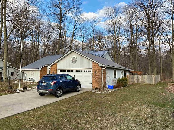 Welcome home to Northwood, an established neighborhood in a wooded setting where you are surrounded by nature and yet close to everything Angola has to offer. Enjoy single level living in this 3-bedroom home with 2 full bathrooms. The front of the home is landscaped and welcoming and includes a solar powered lamp post. Inside the home you will find a modern kitchen with quartz counter tops, tile backsplash, and stainless-steel appliances. The living room has vaulted ceilings and a brick gas fireplace. The guest bathroom has a walk-in shower. The main bedroom has vaulted ceilings, a walk-in closet, and ensuite bathroom. A fenced in backyard provides both privacy and views of nature. New composite deck and Pergola in 2022. The hot tub is new and also stays! The stand-up attic is floored over the entire length of the garage for your storage needs.