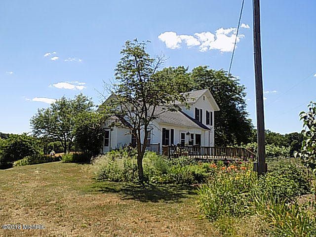 Here is your chance to own a real historic farm house! Built in the 1800's, this home is in excellent condition and has loads of character. Situated on 22.5 acres with wildlife everywhere for the hunter. Home features spacious kitchen, large family room with fireplace, flex room for office, exercise or formal dining, 5 bedrooms and, as a bonus, there are several bay windows, hardwood floors, glass french doors, several sitting ares and main floor laundry. There are 5 outbuildings perfect for storage or a hobby farm for cows, chickens, hogs or other livestock. Belding schools but Lowell is available for home of choice. Don't miss this one of a kind opportunity!
