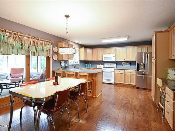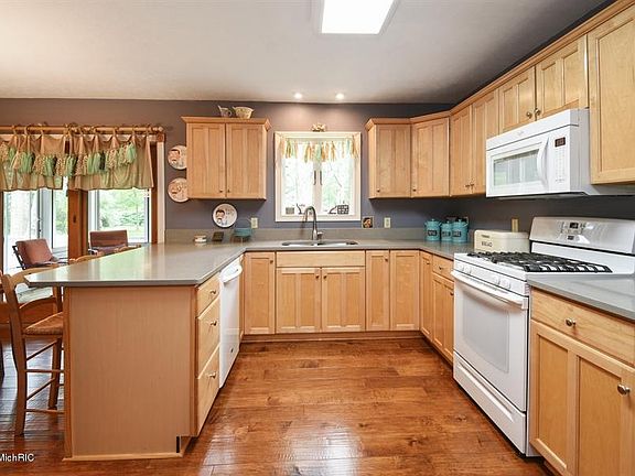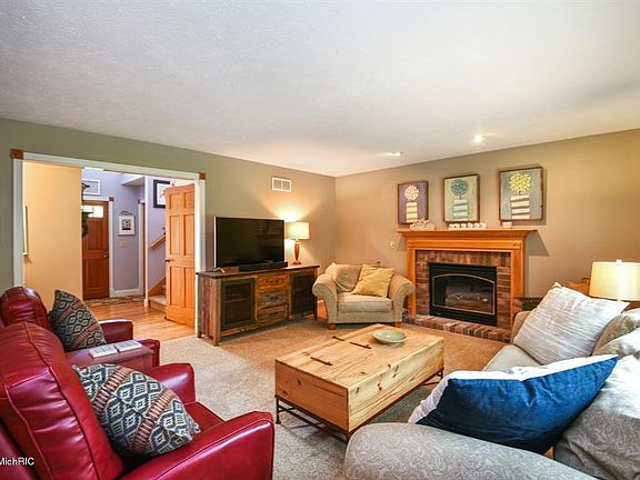 Quality cedar craftsman style home on incredible wooded lot. Very well maintained two story with many upgrades. Kitchen has newer flooring, eating area, new quartz counter tops with stools, new sink and fixtures.Living room has newer carpet and fireplace. Cozy all window three seasons room with vaulted ceiling adjacent to deck overlooking this homes park like back yard which is professionally landscaped with low maintenance perennial gardens and sprinklers. Also a custom built fire pit! Basement recreation room with built in cabinetry and book shelves surrounding the fireplace. Basement also has a half bath and full kitchen with two sinks and built in microwave. Very centrally located..very close to schools, grocery, YMCA, beaches and everything else our great little town has to offer!