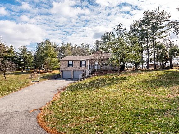 This home is conveniently nestled in Georgetown, just minutes from Highlander Point in Floyds Knobs, Highway 64 and I-64. LOCATION IS FABULOUS! Located in the Highly Desirable NAFC School District, just down the road from Highland Hills Middle School (5 minute drive) and Floyd Central High School. This 3 Bedroom, 2 Full Bath, ALL BRICK raised ranch home offers a large tree filled lot, nice landscaping areas, front porch and deck. Inside features include, Large Bedrooms, Master Suite, Large Kitchen and a true Dining Area. Kitchen and Dining Area both have upgraded Tile Flooring. French Doors lead to an enclosed sunroom off the back of the home, which then exits to a Deck and into the Spacious Backyard. Sits on almost 3/4th acre of land. Lovely Finished Basement with a generous Family Room, plus, a flex area that could be used as a small 4th bedroom, office, hobby area or workout space. Basement also has a large laundry/mechanical room with additional storage. Long driveway leads to the oversized Two Car Garage with ample storage for cars, lawn care equipment, workbench, and so much more! Seller is offering a 1 Year Home Warranty from America's Preferred.