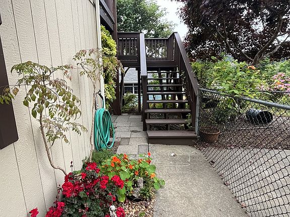 Enjoy the views from this contemporary, custom home with 2 bedrooms and 2 bathrooms. Ensuite bathroom with a jetted tub and large closets. Windows and sliding doors open to the deck with stairs to the yard. One car oversized garage with laundry area and an unfinished space off the garage. Interior stairs lead from the garage to the main living area of the home. Pet friendly fenced yard.