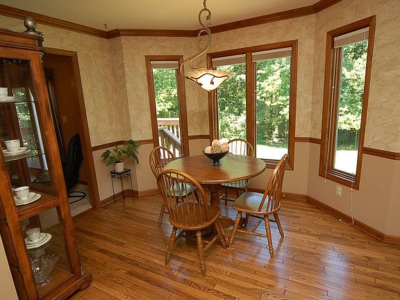 Beautiful rural setting among old family farm land and only minutes from everything! Inviting, all-American front porch welcomes you to this very well maintained home. Large kitchen with breakfast bar. Bright dining room. Spacious living room with stately brick fireplace. Main level master and private bath with jetted tub and custom tile surround. Two huge bedrooms and bath on second. Tons of storage. Five total garage bays plus covered carport. Screened porch and deck. Over an acre of land. Must see!!