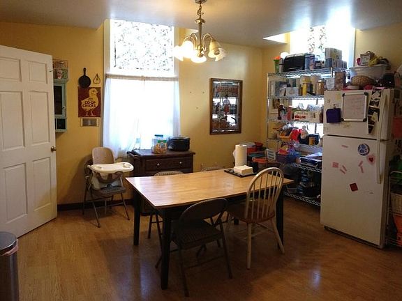 This home was originally a meeting hall, then a skating rink, then a church, and now a home, And thats just some of the lives it's had. Huge open concept with large framed windows that span more than 8' tall, original wood floor and a old staircase leading to the upstairs bedrooms. Couple that with an metal spiral staircase, a corner wood stove and an additional Monitor heater and you have the best of whats old and whats new. House is a bit funky an unique but it has potential and space that is endless. Enjoy the family gatherings on a private deck and fenced in back yard. Home has an old wood boardwalk styles front entry and it has a very charming entryway.