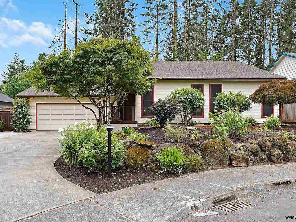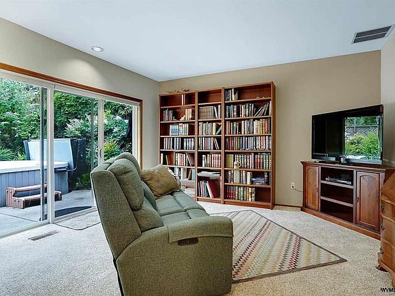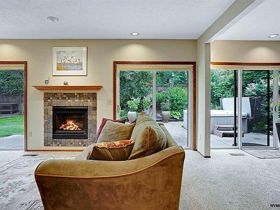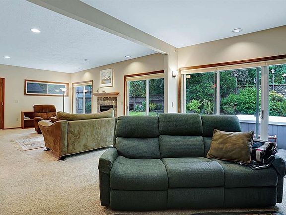 Great home in a great location! Vaulted living room with gas fireplace. Sitting room/den office area. Large kitchen and dining area. Tons of storage throughout! Kitchen has bamboo flooring, 5 burner, high end gas range, granite counters. Spacious bedrooms, bath with inside and outside sinks, tile shower, linen storage. Beautiful fenced yard with 2 patios and hot tub. Extra large driveway with drive through to back yard! Work bench, pull down storage, pellet stove.