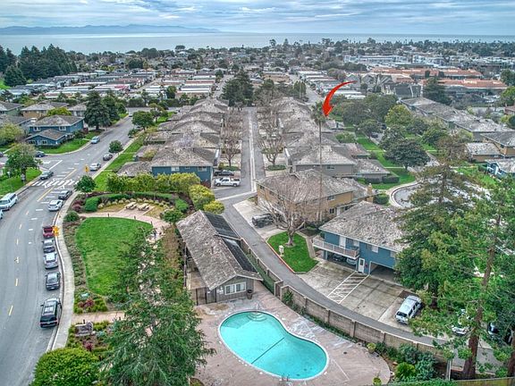 One of the nicest condominium locations in Capitola Shores with windows facing south and west. A sun deck is adjacent to the front door. The rooms are bright and cheerful. The kitchen cabinets are newly refurbished with new LVP flooring downstairs, and there is new carpeting upstairs. All interior walls have been freshly painted. The kitchen has a new stainless sink, faucet and garbage disposal across from the new refrigerator and updated range which is less than a year old. There is a new bathroom vanity and fixtures and new tile flooring. The heating system was just upgraded with a brand-new forced air heater. A one-car garage is included. Capitola Shores HOA has a pool and a lovely community picnic area and lawn. Very centrally located, this home is within walking and biking distance to Jade Street Park, Capitola Village, and beaches. The community's favorite walking path along East Cliff Drive is another highlight. Pleasure Point neighborhood coffee shops, local dining, Whole Foods, New Leaf Community Market, and shopping are nearby, plus it is an easy walk to Capitola Mall. Children attend award-winning Soquel School District schools. All that makes Capitola a famous destination is nearby! This 2-bedroom, two-story condo is great value and move-in ready!
