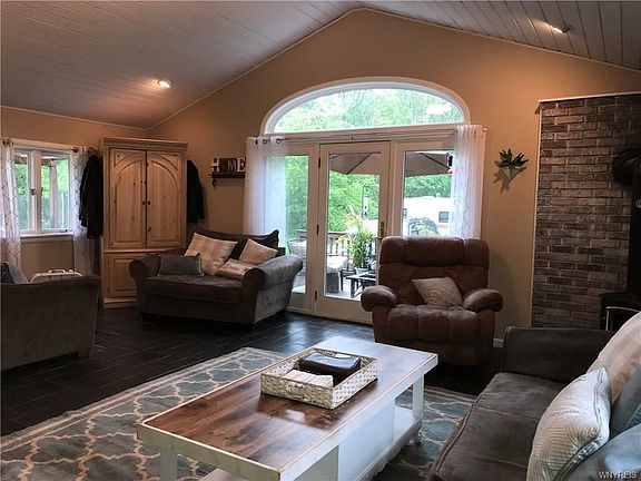 Charming 4 bedroom, 2.5 bath home on half an acre with a "rocking chair" front porch. Formerly a bed and breakfast. There is plenty of yard space for summer enjoyment, plus a large wrap around deck. The large family room with cathedral ceiling is perfect for indoor entertaining. Enjoy the convenience of a first floor laundry room. All other furnishings are negotiable. Many windows are vinyl replacement. The living room features a nice leaded glass window. The attic has a high ceiling and is finished with a large room, sitting area and half bath allowing for many possible uses. The lot is a rectangle but has a 16' strip for the driveway off Model City Road. There is also a gravel parking pad in front. Showings begin Sat, June 15 at 10am.