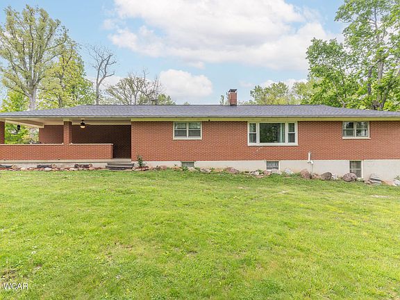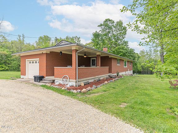 Experience the serenity of country living on this exceptional 20.47-acre property, featuring a 1.5-acre treated stock pond stocked with bluegill, sunfish, and both small and large mouth bass. With 5 wooded acres and 9 rolling acres of pasture, this landscape offers picturesque views of deer, turkey, and a variety of birds, highlighted by magificent sunsets. Located in the highly desirable Tri-Village school district, this inviting 2-bedroom, 3-full-bath brick ranch spans 2,436 sq. ft. and includes a charming covered front porch, along with a one car garage on main level and a spacious 2-car garage in lower level. The heated and cooled 2-car attached garage is perfect for housing recreational toys and entertaining, offering stunning views of the pond and surrounding property. The master bathroom has been beautifully updated with a tiled shower featuring a bench and a stylish double vanity. The full basement is partially finished, providing the potential for a 3rd bedroom and comes equipped with an additional full bathroom. Enjoy various heating options, including heated ceilings, a heat pump, and a cozy wood-burning fireplace. The home boasts solid mahogany trim, a newly updated breaker box and electrical system, and individual thermostats in each room for personalized comfort. New vinyl flooring enhances the living room's inviting atmosphere. The property also features a spacious 29x49 outbuilding for ample storage or workshop needs. The driveway recently received new gravel, ensuring easy access, and the roof on the house was replaced in 2023, providing you with peace of mind. Don't miss this opportunity to own a beautiful property that seamlessly combines nature with modern comfort!