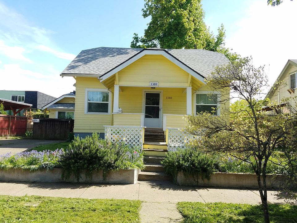 Light bright newly updated 2 story old world charmer with a porch, situated on quiet beautiful street. Convenient Whiteaker location, 2 blocks from restaurants, shops and parks. Perfect for a walking/biking lifestyle. Updated kitchen with new counters and appliances. New vinyl plank flooring throughout main level. Fully remodeled bathroom with new fixtures. 1 bedroom and bathroom on the main floor. 2 bedrooms upstairs. Plenty of closet space in each bedroom. Full unfinished basement perfect for storage (not included in square footage). Mudroom off the kitchen. Washer/Dryer hookups in the basement. Gas furnace. Small fenced in backyard with a small deck and shed. *Cottage next to house is a separate unit, not included in this listing. Tenant responsible for utilities and yard maintenance.