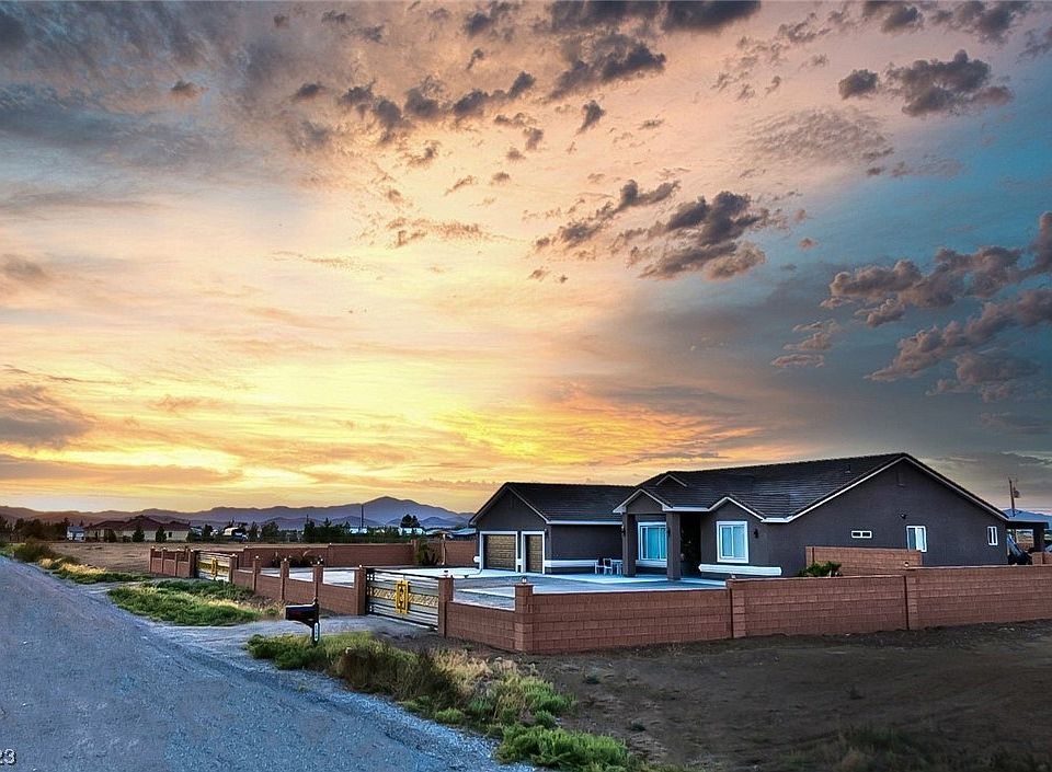 This one-of-a-kind custom contemporary home is sitting on over 1-acre lot, providing ample space for horses, and offering breathtaking mountain sunset views all around. The heart of this home is the meticulously designed custom kitchen, featuring a stunning Calata Quartz Island with a matching backsplash and sleek cabinets glass finishes, creating a modern and inviting culinary space. The primary bedroom suite echoes the same level of sophistication and attention to detail, with cabinets that mirror the exquisite design found in the kitchen. This home is a true gem, seamlessly blending contemporary elegance with the serenity of its natural surroundings." Enjoy the warmth and ambiance of electric fireplaces in both the family and living rooms with custom-designed ceiling that adds a touch of unparalleled elegance to its interior creating inviting and comfortable spaces for gatherings and relaxation.”