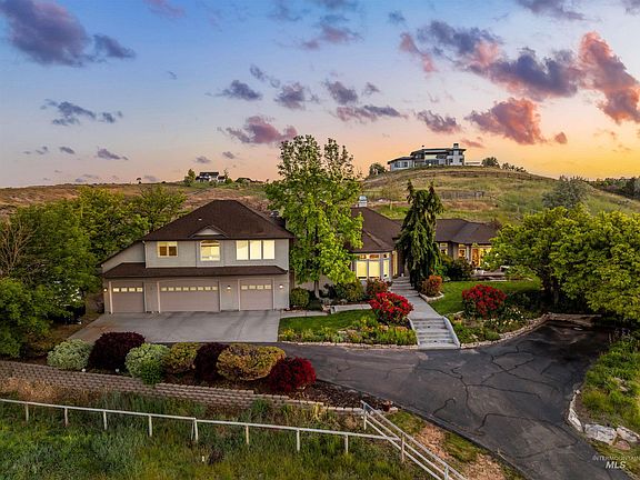 Commanding over 4 lush acres in coveted Stillwell Estates atop the rolling foothills of Eagle, this exceedingly rare equestrian showcase pairs panoramic valley views—stretching from Downtown Boise’s skyline, all the way to Nampa—with an architecturally thoughtful residence. Fully fenced pastures, a barn, corral, and generous RV parking invite horses, hobbies, and outdoor toys, while manicured garden beds and four separate patios give every sunset its own front-row seat. Inside, a mindful renovation merges clean contemporary lines with warm rural character: quartz-topped island kitchen with built-in appliances and wet bar, an open great room anchored by a gas fireplace, and a light-filled loft ideal for a second office or play studio. Main-level flex spaces balance work and leisure, complemented by abundant storage and an attached four-car garage. Just minutes from downtown Eagle yet wrapped in pure country serenity, this property offers the rare freedom of acreage living without sacrificing modern comfort.