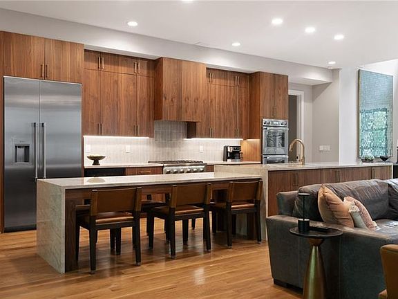Tucked away on a quiet street in Morningside, this stunning three-story custom home reimagines modern luxury across 6,000+ square feet of meticulously crafted living space. This residence blends elegance with functionality and features premium finishes like white oak floors, copper gas lanterns, a floating staircase, and designer tile. The open-concept main level is perfect for lively gatherings and cozy evenings, anchored by a breathtaking kitchen with Taj Mahal quartzite countertops, a waterfall island, custom cabinetry, a scullery-style pantry, and top-tier Thermador appliances. Warm tones and natural textures create an inviting atmosphere throughout. The home offers six spacious bedrooms and six full baths, including a main-level en-suite guest room and an additional bedroom and bath, which is ideal for a home office, flex space, or multigenerational living. Upstairs, expansive windows showcase tranquil views of a private, lush forest. The primary suite offers stone counters, an oversized European-style shower, a soaking tub, a custom walk-in closet, a private balcony, and designer lighting. Two additional en-suite bedrooms, baths, and a media/living space complete the upper level. The terrace-level suite, perfect for in-laws or an au pair, includes a rec room, wet bar, and living area. Other features include a 2-car garage with ample storage, a large yard, and a terraced backyard primed for a future pool (permit available) or play area. With easy access to Atlanta's premier shopping, dining, and entertainment, this home offers not just a place to live, but a vibrant lifestyle.