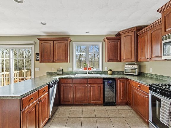 This beautifully maintained and spacious colonial will not disappoint! Sitting back more than 300ft from the road on over 3 acres of land. This home offers a large living room with a fireplace, family room, and dining room all great for entertaining. Updated half bath with laundry. Bright and airy kitchen includes a breakfast nook and large glass doors leading to the deck. Primary bedroom complete with ensuite shower and soaking jacuzzi tub. In the walkout basement you'll find a new tankless water heater installed in March 2023, tons of storage and a finished bonus room currently being used as a home office. Easy highway access, just minutes from shopping, restaurants and more. You don't want to miss this one!
