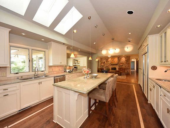 Sprawling lannon stone ranch set on 1.7 acres in prestigious Indian Hills. High end kitchen with Wolfe range and double over, Sub-Zero refrigerator, custom cabinetry and granite countertops. Garden room dinette overlooks tranquil pond and wooded backyard teeming with birds and wildlife. Solarium with swim spa and hot tub leads to backyard deck. Lower level kitchenette, theater room, exercise room, craft room and additional bedrooms and baths. Walk to village park and library. Welcome Home!