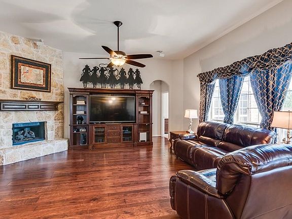 STUNNING CORNER LOT ON HALF AN ACRE*4 Bed 3 Bath SINGLE STORY*Hardwood floors,vaulted ceilings&wrought-iron spindles*Updated Island Kitchen w.granite,SS appl,dbl ovens,gas cooktop,breakfast bar&intricate detailing*Master Retreat features a sitting area,gas FP,separate vanities&WIC w.a custom closet system*Dining Room w.tons of natural light*Executive Study w.french doors&WIC*Cozy Family Room w.stone gas FP,surround sound wiring&beautiful Backyard views*Secondary Bedrooms each w.a WIC*Private Media Room upstairs w.surround sound wiring*OVERSIZED BACKYARD w.hot tub,covered&open Patio&surround sound wiring*Large 3 car Garage*Tankless water heater*Superb location near community pond&park*Quick access to 287&35W