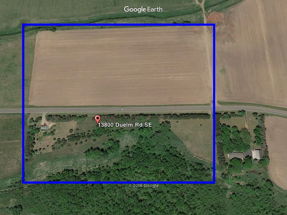 Outbuilding on south side of 40 acres (1/4 quarter section, cut through by road). 14 acres tilled.