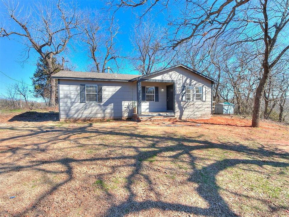Welcome to your dream home nestled on 4 acres of serene land in the heart of Newalla. This charming 3 bedroom, 1.5 bathroom residence has been meticulously remodeled, accentuated by luxurious vinyl flooring that exudes both style and durability. As you step inside, you're greeted by an open-concept living space bathed in natural light, perfect for entertaining guests or relaxing with family. The kitchen features brand new appliances, and ample cabinet space, making it a chef's delight. The spacious master bedroom offers a tranquil retreat with an en-suite half bathroom for added convenience. Two additional bedrooms provide plenty of space for family members or guests. Additionally, the expansive 4-acre lot offers endless possibilities for outdoor activities, gardening, or even expansion. Plus, rest easy knowing that a storm shelter is available for added safety and peace of mind during severe weather. Don't miss this rare opportunity, schedule your private showing today! Seller holds an active Oklahoma real estate license.
