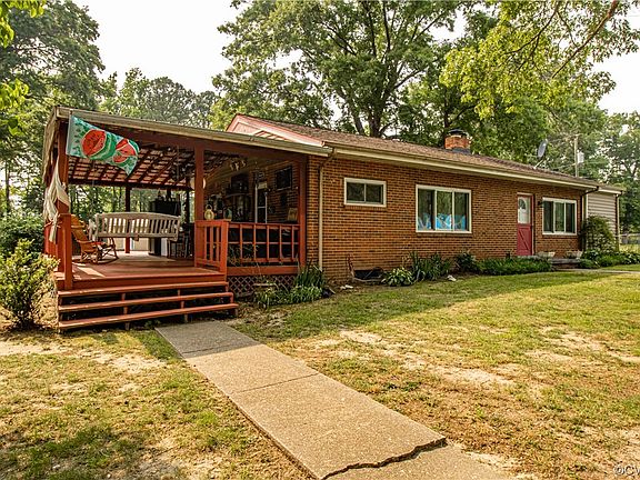 Attention Enon Fans! This brick Rancher with vinyl accents sits on a large corner lot that's approximately an Acre. Gorgeous park-like setting, completely fenced yard, 2-car Garage, Huge storage building, separate fenced-in area for gardening, fire pit, and a free standing deck perfect for family gatherings. Inside you will find a mud room (or office area) that leads into the Living room with hardwood flooring and a brick fireplace that flows into the eating area and galley Kitchen. The primary bedroom has been expanded and has 2 entrances. Just opposite of the full bath is another bedroom. The full basement has one more bedroom (perfect teen space), the laundry area and additional flex space with endless possibilities. The large side deck will be a family favorite! Located off the kitchen it's perfect for your morning coffee, a good book, or a family bar-b-que! Come add your own touches and make this house your home! Includes 13804 Enon Church Road, may be buildable! Close to I-295, I-95, Fort Lee, & Shopping.