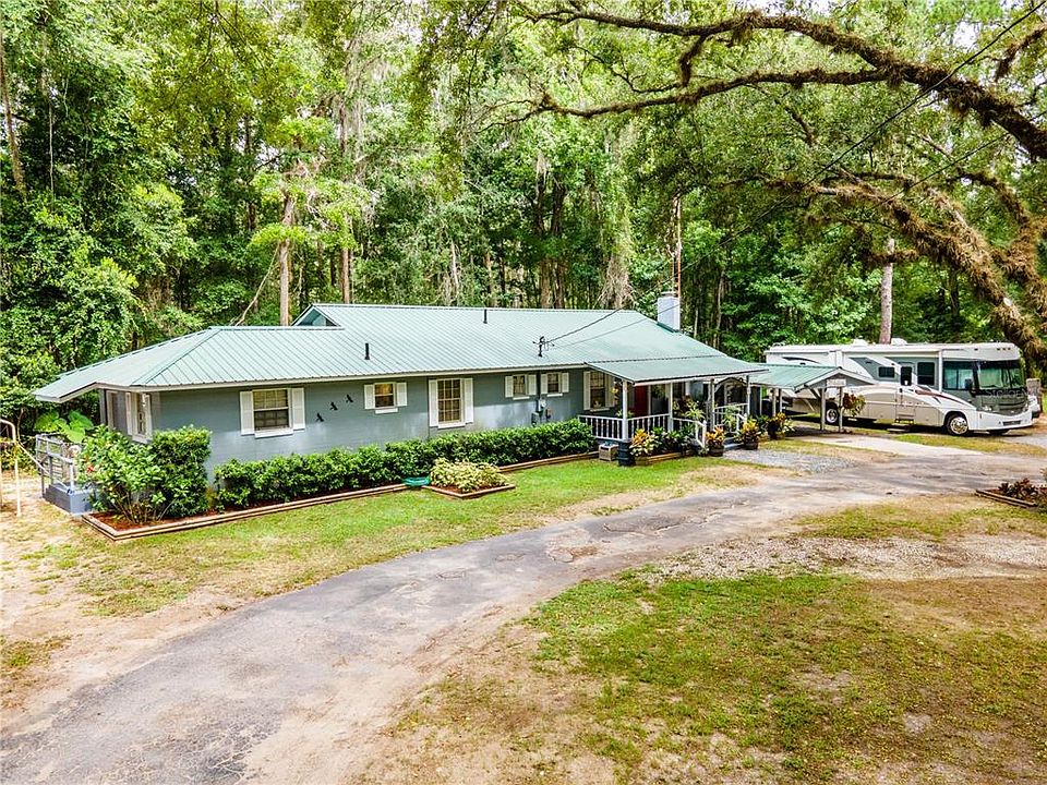 Paved road frontage on this beautiful .82 acre treed lot with beautiful forest at your back door. Upon arriving you access via circular drive and see the beautiful landscaping. The 7x24' country porch invites you into this 1981 concrete block home with 1469 living square feet, 2 bedrooms and 2 bathrooms. The open floor plan is great place to gather for great times and everyone is nearby. Living room is spacious with dining table area and lots of windows providing lots of natural light. Kitchen is updated with wood cabinets, granite tops, some glass accent doors, under counter lighting, braided detailing, crown molding, large center island and you can sit in the kitchen nook or the breakfast bar. Main bedroom is nicely sized, with walk in closet and unique main bathroom layout includes fiberglass shower/tub combo, updated vanity and privacy toilet with additional sink. Guest bedroom is spacious with nice sized closet. Inside laundry is located in hallway and includes washer/dryer, cabinets and shelving. Updates inside include lighting, flooring, appliances and updated bath. Additional updated include new 200 amp power panel, septic drain field in 2023. Outside are tons of great features including 2 sheds with work shop areas, and a single attached carport. Fire pit area is perfect for gathering and includes metal fire pit, lighting and crushed granite base. You also have an RV pad with 50 amp electric hook-up. You will find details like wainscoting, rounded corners, crown molding and many more upgrades. Make your appointment today to view your new home!!! Located minutes from downtown Fort McCoy with a grocery store, doctor's office, pharmacy, hardware, gas station, pizza, and more. Short drive to Silver Springs which includes Walmart, Lowes, Bealls, Chipotle, Outback and many more of your favorite shopping spots and restaurants. Ocala is only another 10 minutes from Silver Springs with vibrant night life and lots of entertainment options and restaurants. Gainesville(Home of Florida Gators) is only 50 minutes to downtown. If you’re a fisherman, or hunter or simply love hiking, canoeing or kayaking you are in luck! Minutes to Ocklawaha River, Ocala National Forest, and many natural springs(Salt Springs, Silver Glen Springs, Juniper Springs), horseback and walking trails, and off-road vehicle trails await your explorations. One-of-a-kind property and location! Ready for new owners!