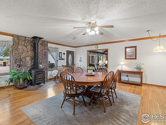 This one-of-a-kind property combines wide-open space, modern comforts, and endless possibilities-all set against the breathtaking backdrop of the Rocky Mountains. The 4-bedroom, 2.5-bath home offers a thoughtful layout, with the fourth bedroom serving as a spacious loft retreat complete with its own bathroom. Cozy up in the dining room with a gas stove fireplace or enjoy the inviting warmth of the wood-burning fireplace in the living room-perfect for Colorado evenings. For the hobbyist, entrepreneur, or gearhead, the fully insulated, heated 54' x 72' shop is a dream come true, featuring an office, shower and toilet, washer/dryer hookups & outlets and airlines all the way around for convenance , The water heater is 2 years old, plenty of space for projects big or small with attic storage and a separate tool room where the master valve shut off is located. Two additional 240 sq. ft. outbuildings expand your possibilities: one is currently a climate-controlled craft room, the other a charming bunkhouse-both equipped with A/C and electrical service. Outdoors, enjoy a custom RC car track with a viewing stand, beautifully landscaped front yard, newly painted back deck with a new gazebo and plenty of space to make your rural-living dreams a reality. Whether you're seeking a private homestead, a place to work and play, or simply unmatched views every day, this Weld County gem delivers it all.