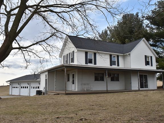 Rural home on nearly 4 acres! Easy drive to the South side schools or IL Route 78. The main floor bath was redone in 2018, roof approx. 2012, and furnace & A/C in 2006. Some windows have been replaced. The living room patio doors lead out to the wrap-around porch that faces South and East. The spacious, attached 24'x32' garage is heated. Lots of possibilities! This one has not been on the market in 49 years! Set up your showing! This home is being sold "As-Is".