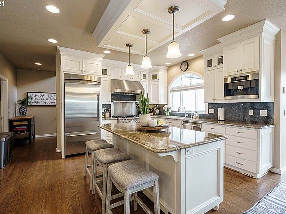 Enjoy morning sunrises as it climbs over Mt. Hood. A sprawling property great for entertaining yet cozy for family nights at home. A chef's kitchen w/SS appliances and large island for prep work + gathering with friends & family. Large family room w/stone fireplace. Comfortable oversized bedrooms, elegant spa-like bathrooms and professional home gym, tennis/basketabll court, sauna, steam shower. Large patio, deck, outdoor kitchen, RV garage. WELCOME HOME!