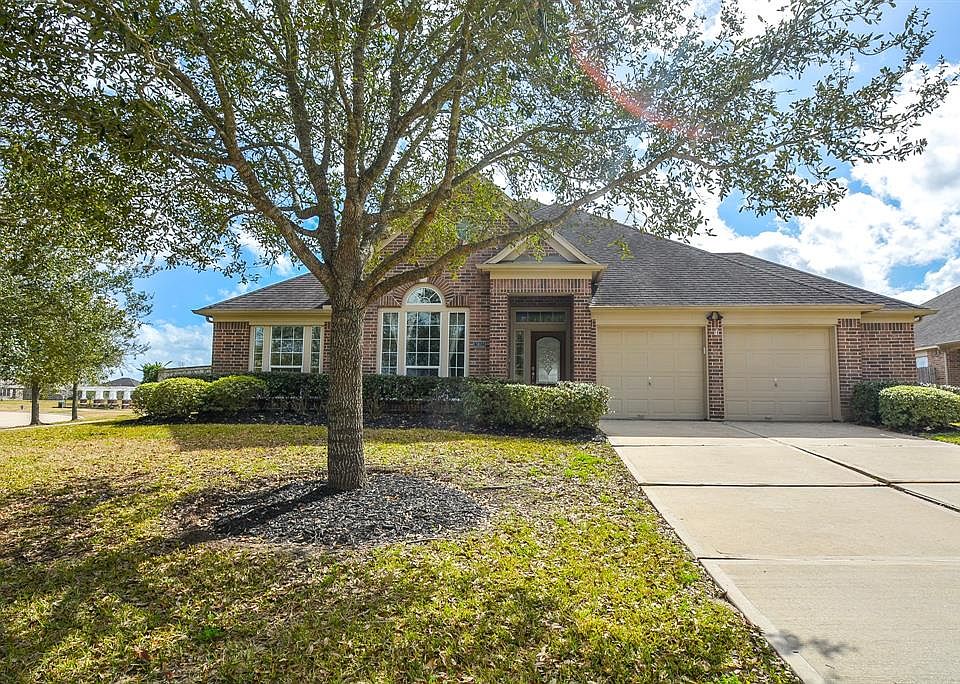 This gorgeous 4-bedroom, 2-bathroom waterfront home in Lakes of Savannah boasts a brick veneer, high ceilings, wood flooring, gas log fireplace, formal dining room, and a study with French doors, built-in shelves, and abundant natural light. Home upgrades include a new water filter, water heater, dishwasher, A/C unit, coils, and electrical box, along with an updated security system and garage with new doors, paint, and sheet rock. Admire sparkling views of the water from the spacious backyard, with a brand-new pergola, patio, fans, fencing, gates, and 3 majestic live oaks. The island kitchen features granite countertops, a tile backsplash, breakfast bar, and undercabinet lighting. Relax in the primary suite, complete with new flooring, a bay window, walk-in closet, dual vanities, jetted tub, and separate shower. Community comforts include a splash pad, pool, playgrounds, and trails. Commuters enjoy a straight shot to Downtown Houston via Hwy 288 and Hwy 6. Call today!