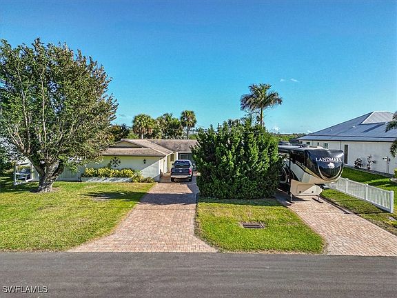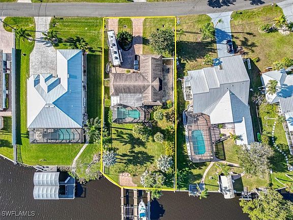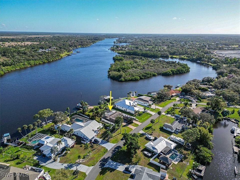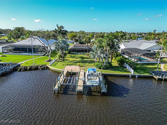 If you are looking to experience SWFL inner coastal waterfront living at its finest, check out these views! This home is on .40 of an acre sitting directly on the Caloosahatchee River with deep water Gulf Access, along 96 feet of river frontage with a WearDeck composite dock that was completed in 2021 including TWO 15,000 lb. well maintained lifts ready for your boat and Jet Skis in your own backyard. This home took water damage from the Hurricanes leaving a perfect canvas to renovate or demo to build your dream home from the ground up. You will enjoy breathtaking sunrises, mature palm trees and a large producing mango tree sitting directly on your property. The features of this house include two bedrooms and three bathrooms with just under 1800' sq ft. of living space including a two car garage, a well maintained in-ground pool, 30 AMP RV power, and a well for irrigation to save money on your water bill. When the perfect opportunity arises do not wait! Schedule your showing today!