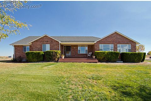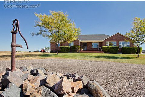 Custom built ranch home, meticulously maintained and updated. Open windows letting in sunshine & stunning mountain views. Perfect opportunity to live in the country with a short drive to Denver/DIA. Open floor plan, 5 pc master suite, gas fireplace, fin basement,rec room w/ bar, 3 car garage. Outbuildings, setup for livestock and horses, hay production, valuable water rights. Land is eligible for subdivision/recorded exemption w/ Weld County. Included is 20 acres on separate deed w/water rights.