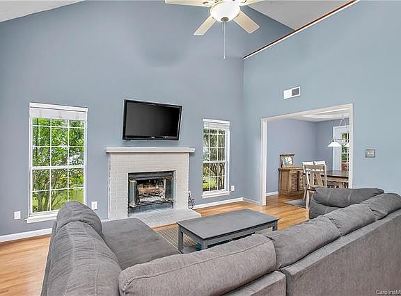Welcome to this 3 bed, 2.5 bath home w loft in Yorkshire! 2 story living room with vaulted ceiling & painted brick wood burning fireplace. Kitchen and breakfast area feature white cabinets, granite countertops, pantry, backsplash & stainless steel appliances. Dining room w tray ceiling nestled between kitchen & living room. Master suite on main. Master bath w soaking tub, glass shower & large vanity. Bedrooms 2 & 3 upstairs. Loft overlooks living room and provides additional living space! Shady backyard is fully fenced w large deck. Perfect for entertaining! 2 car garage. Exterior painted and deck stained 2020. Walk-in attic storage space upstairs. close to I-77 & Carowinds!