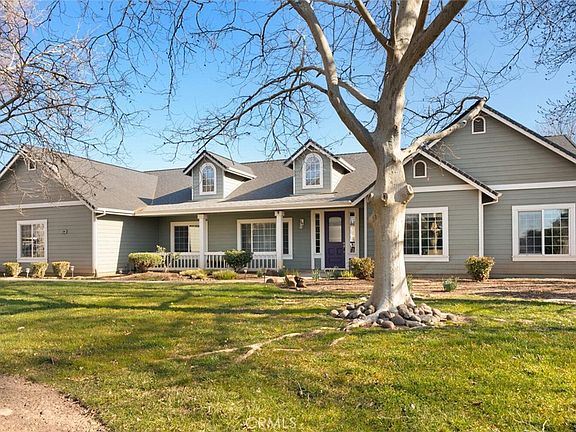 Come see this beautiful North Chico home located in the Autumn Park subdivision! As you drive up, you'll notice the well manicured yard with mature landscape and the timeless charming front porch. When entering the home, you're immediately drawn to the light and bright living room that has lots of windows for natural light, white built-in cabinetry, a wood burning fireplace, crown moulding, and tall ceilings. The kitchen around the corner has been updated with granite counters, new light fixtures, cork flooring, and stainless steal appliances. There is a spacious walk-in pantry close to the dining room for any dinner items you may have forgotten! There is a lovely sitting room off the dining with French doors that is perfect for the after dinner coffee or wine. Leading down the hallway, you'll find two spacious bedrooms and a bathroom, as well as the master suite. The master has a vaulted ceiling, walk-in closet, en suite bathroom with a large tub, dual sink vanity, and second closet. On the other side of the home, there is the fourth bedroom, guest bathroom, and the laundry room. In the backyard, you'll fall in love with the sparkling pool and large patio that is perfect for upcoming summer entertaining. There are several producing fruit trees and plenty of space for outdoor activities! Other notable features include an OWNED 13.87 kW solar system, new glass roll-up garage doors, epoxy garage floor, a ductless mini split in the garage, a new pressure tank for the well, and a custom gate with RV parking potential. This property has so much to offer and is ready for you to call home!