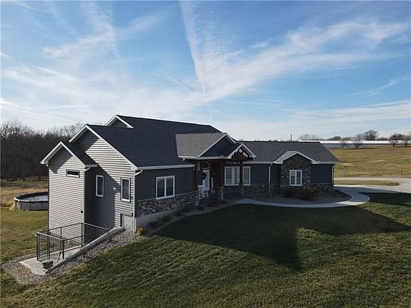 Beautiful one of a kind ranch, custom built in 2020. This energy efficient home is on a 5 acre parcel with plenty of green space, timber, landscaping, and a small creek. Property boasts an open floor plan with high ceilings, geothermal heating and cooling with reusable filter, HVAC whole-home humidifier, vinyl siding with styrofoam to add R-value, granite counter tops, custom kitchen cabinets featuring soft close hardware, large island, built in microwave drawer, gas fire place, life proof LVP, faux wood blinds in all bedrooms and office, large master bedroom, large master bath with jetted tub, custom built-in closets, huge master shower with bluetooth speaker, hot and cold water spigot located in garage, 30' above ground salt water pool installed in 2021, pelican water purification/softening system(no pellets needed), LED lighting throughout, large basement is ready to be finished and is stubbed for a full bathroom also has high ceilings, covered deck off of the dining room, walk out basement to a covered concrete patio, all electric besides gas fireplace and gas line on the deck for a grill, concrete storm shelter, united fiber available for TV/internet, two 50 gallon water heaters, 500lb buried propane tank(owned), 2 200 amp service panels, private gravel drive and much much more. Don't miss out on this special custom-built home! It is equipped with many great features inside and out. 2022-03-28