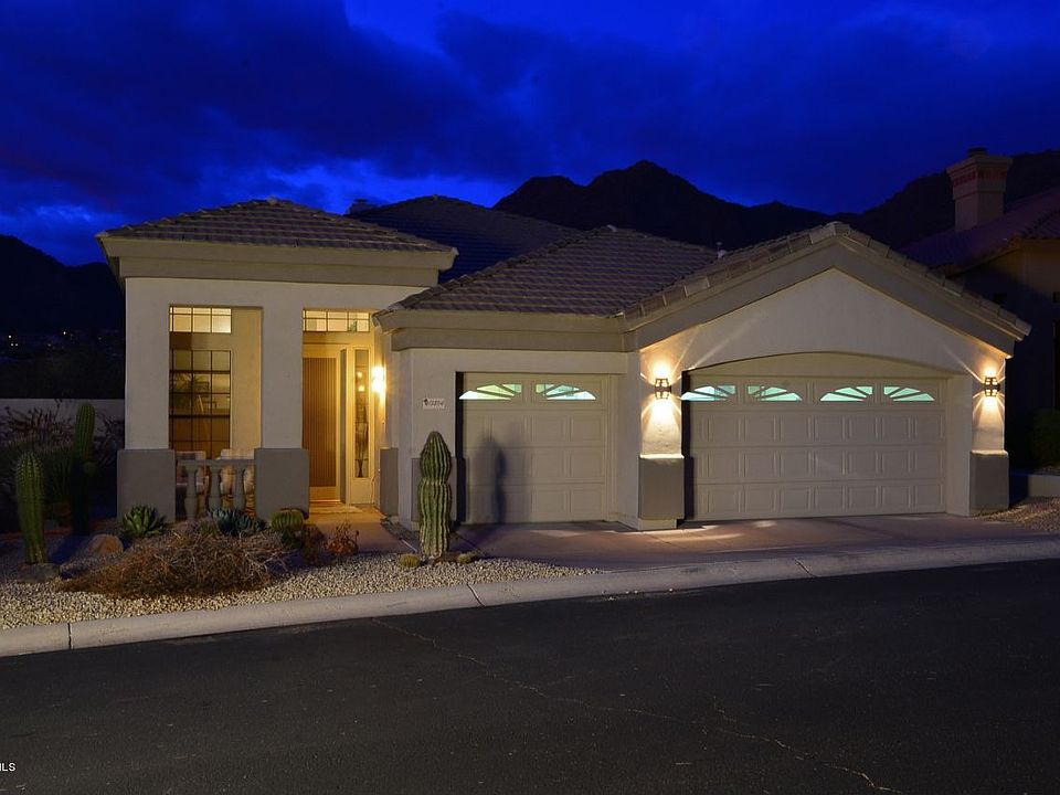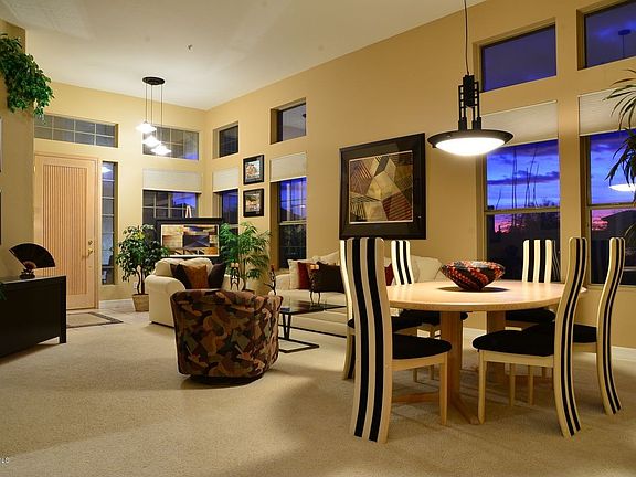 Enjoy sweeping panoramic views from your private desert oasis. Dramatic 12' ceilings throughout the home, along with tons of natural light make this home an entertainers paradise.Media/flex room off living area is wired for surround sound.2nd bedroom has built in desk-ideal as a home office. Large master suite with dual walk-in closets. Updated lighting and plumbing fixtures, art niches and pot shelves are just a few of the amenities this home offers.Stunning sunset and mountain views from almost every room in the house. Enjoy viewing your lush, low maintenance desert botanical garden from your heated in-ground therapeutic spa..Most furniture and furnishings, including the 5 speaker Dolby surround system, are available by a separate bill of sale. Hurry, views like this don't last long!