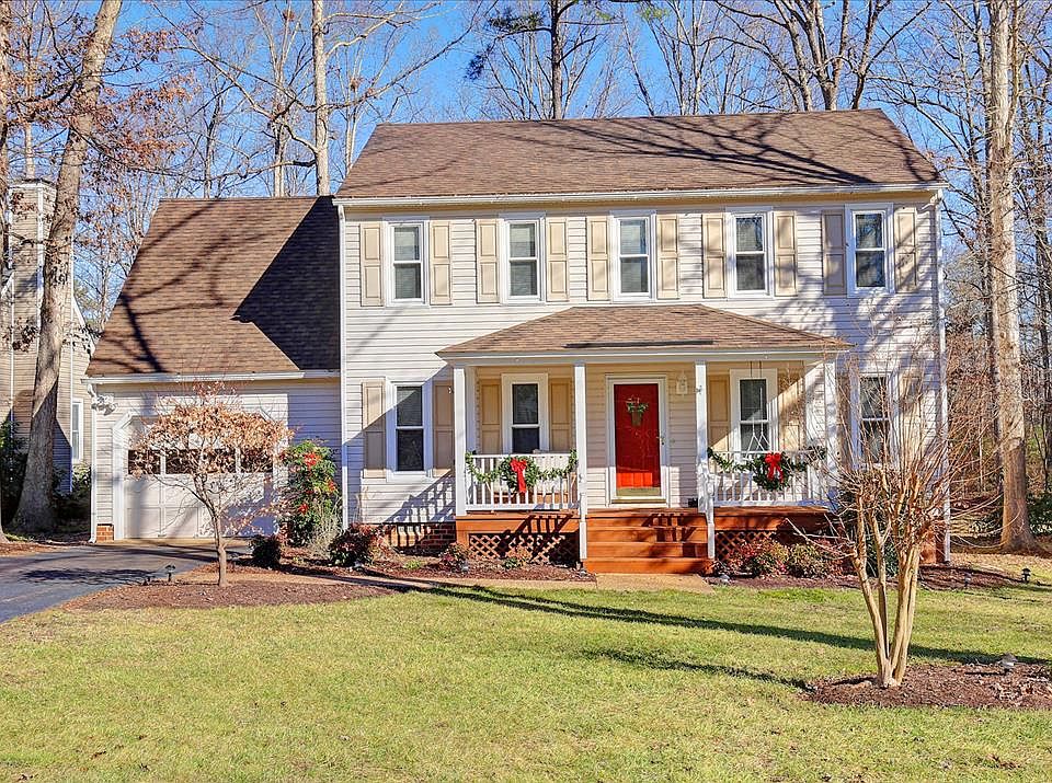 Beautiful 4 bedroom, 2.5 bath Colonial in Brandermill. First floor features formal living and dining rooms, a great kitchen with Silestone counters, pantry and breakfast nook, family room with fireplace and access to the large deck, and powder room. The master bedroom with walk-in closet and en-suite bath is found on the second floor, as are three additional bedrooms and a guest bath. Other amenities include an inviting front porch, vinyl siding, 1-car garage, cul-de-sac location, large, private backyard, hardwood floors in formal rooms and foyer, ceiling fans, dimensional shingles, paved driveway, crown molding, chair rails, insulated walk-up attic, and so much more. Appliances and window treatments stay. Very convenient to schools, shopping, and major highways. To take a look at this wonderful home, please call Team Assist2Sell at 804-794-6789.