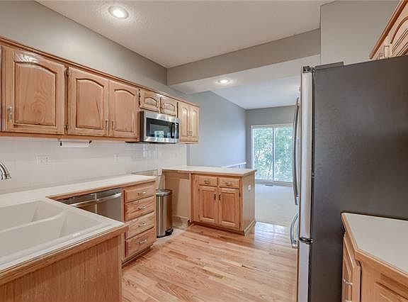 Spacious Lakeview maintenance provided two-story townhome features 2 large bedrooms with walk in closets, 2 living spaces and more. Finished basement has full kitchen set up, surround sound and walks out to patio. Lots of storage for all your extras. Backyard offers tons of privacy. One deck off the kitchen and a martini deck off the primary bedroom. There is a carport assigned to this unit. This home is turnkey so don't miss out! Located near all major highways, restaurants and entertainment. Shawnee Mission School District!