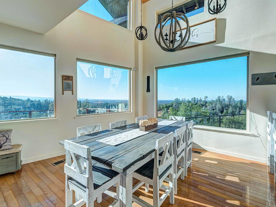 Absolutely stunning home in NE Redding with 2300sqft and over 5 acres of privacy and serenity! If you are looking for a home with views, look no further! Mountain views from every window, gorgeous craftmanship and architecture, huge vaulted cedar ceilings, private entry, beautiful updated kitchen perfect for hosting, and wonderful large porch to sit out and enjoy the picturesque sunsets! Must -see