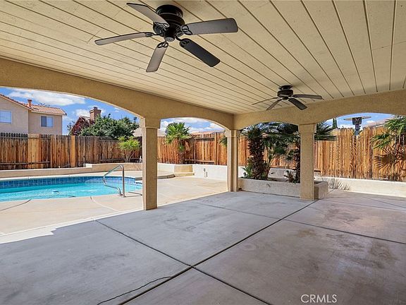Welcome to this beautifully updated single-story home in a sought-after Victorville neighborhood! With 4 bedrooms, 2.75 bathrooms, desirable features, and modern upgrades, this home offers the perfect blend of comfort and luxury. Imagine entertaining guests or relaxing in the living or family room by the cozy two-way fireplace and enjoy preparing meals with gorgeous granite countertops, included refrigerator, and built-in stainless steel appliances adorning the spacious kitchen. The handsome wood laminate flooring adds a touch of sophistication while the plantation shutters provide privacy and enhance the home’s aesthetic appeal. Escape to the backyard oasis where you'll find a sparkling pool, perfect for cooling off during hot summer days or hosting unforgettable pool parties. The large covered patio with built-in ceiling fans allows for year-round outdoor enjoyment, whether you're savoring a morning cup of coffee or hosting a barbecue with family and friends. The mature tropical landscape in the backyard creates a private retreat and a tranquil backdrop for relaxation and leisure. To make your move effortless, this home also includes the washer and dryer, saving you time and hassle. With all the modern conveniences at your fingertips, you can settle in and start enjoying your new home from day one. Schedule a showing today and discover the incredible lifestyle this home has to offer!