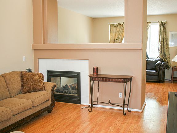 3Bed 3Bath Home - open floor-plan. In popular North Range Village, with abundance of natural light, Vaulted Ceilings. Laminate Wood Floors. Open Loft area, great for TV room, study/ office, or 4th bedroom. Master bedroom with en-suite Bathroom- Walk-in Closet. Large Kitchen w/ Pantry, ample Cabinet / Counter space. Living Room boasts unique designer touches, and Double Sided gas log Fireplace that opens to the cozy Family Room. Big corner fenced lot with quaint Front Porch and extra large back Patio for great summer BBQ's. Main level Laundry room. Sprinkler system, New Roof in 2010. All Appliances included!