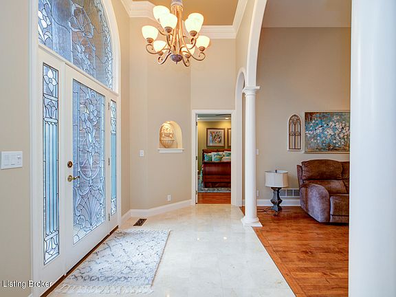 2001 HOMEARAMA HOME with fantastic attention to detail by original owners. Beautifully maintained oak flooring throughout contrasted in areas with marble tile. The kitchen has upgraded cabinetry with newly updated appliances. which leads to a cozy sun room with access to the patio and large 3-car garage. Great room features built-in's that are timeless. Custom-built plantation shutters installed in each room. Private first floor primary bedroom, with en suite features a large walk-in closet, double vanity, tub and frameless shower. Also included is a separate sitting room w/gas fireplace for quiet relaxation. The basement boasts over 2000 sq. feet of pure entertainment potential. The finished area is a wonderful living area with plenty of room for a pool table and other fun toys. The unfinished section is incredibly spacious offering additional build-out options with plenty of storage for the whole family. 3-Car garage offers significant room for vehicles, yard equipment, bikes, etc. The driveway pad is equally large and offers signicant space for activity and additional parking.